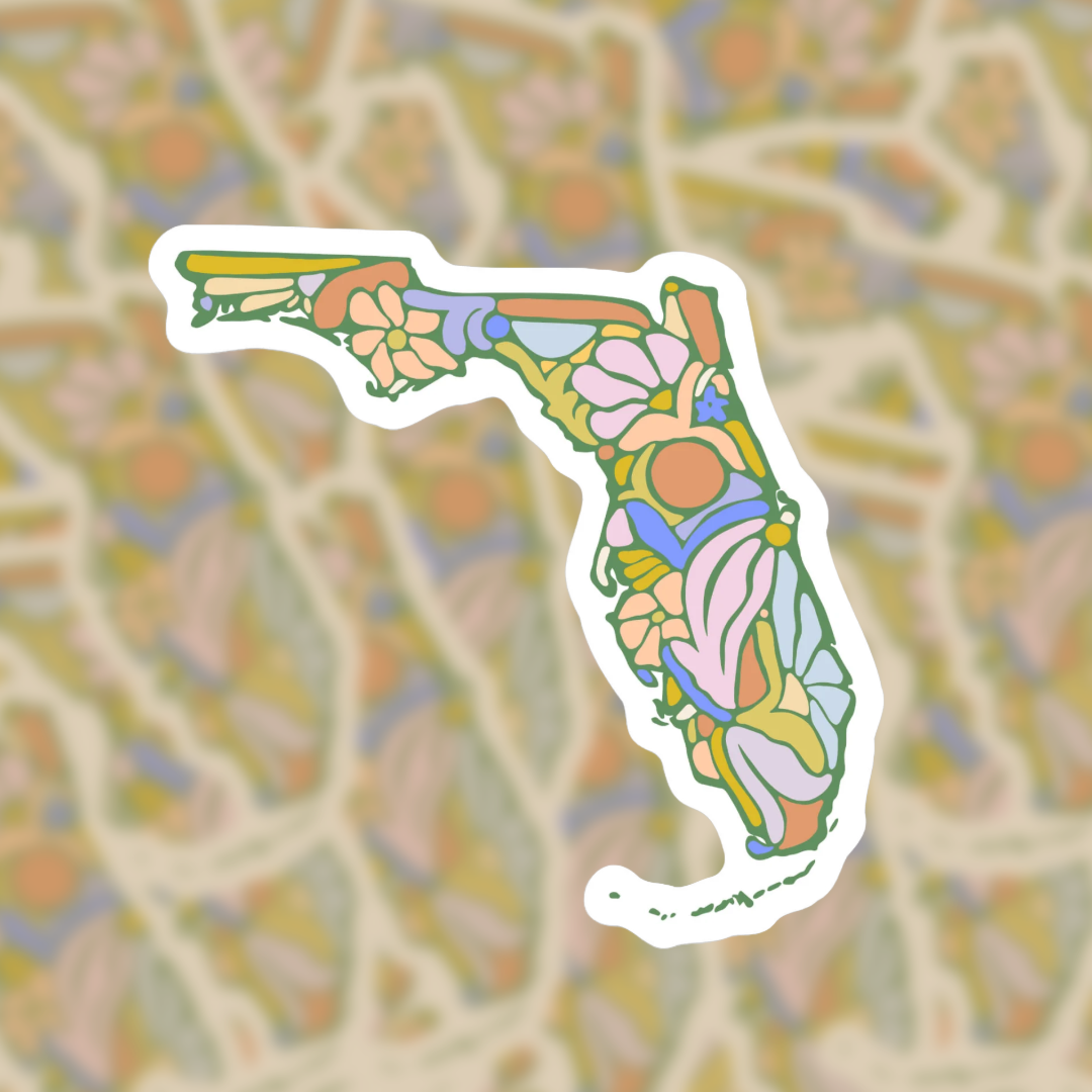 Show off your love for the Sunshine State with our Florida Floral sticker! This high-quality matte vinyl sticker will last outdoor environments and any surface you'd like to stick it to.
